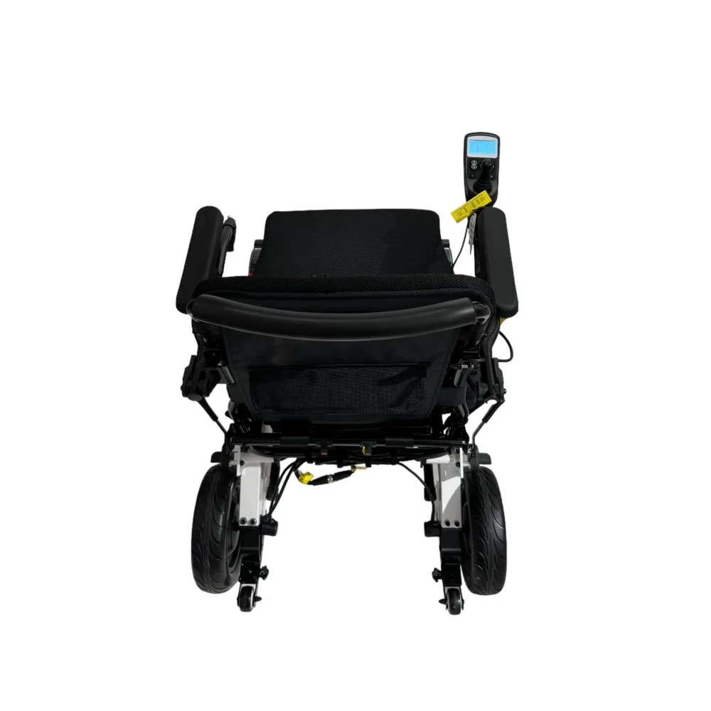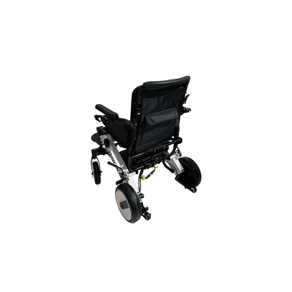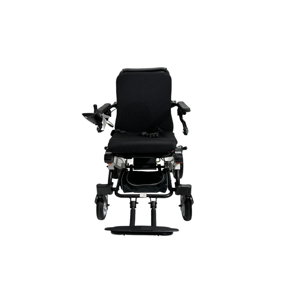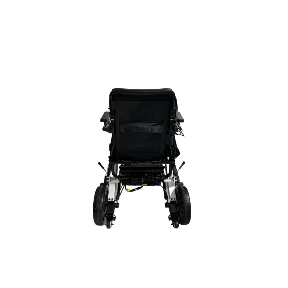 - التصميم المتين والمريح: يتميز هذا الكرسي المتحرك الكهربائي بإطار قابل للطي مصنوع من سبيكة الألومنيوم، مما يجعله خفيف الوزن وقويًا في الوقت ذاته. يمكن طي الإطار بسهولة لتسهيل عملية التخزين والنقل. إضافةً إلى قابلة طي مسند الذراع ومسند القدم مما يوفر راحة إضافية وسهولة في الدخول والخروج من الكرسي.